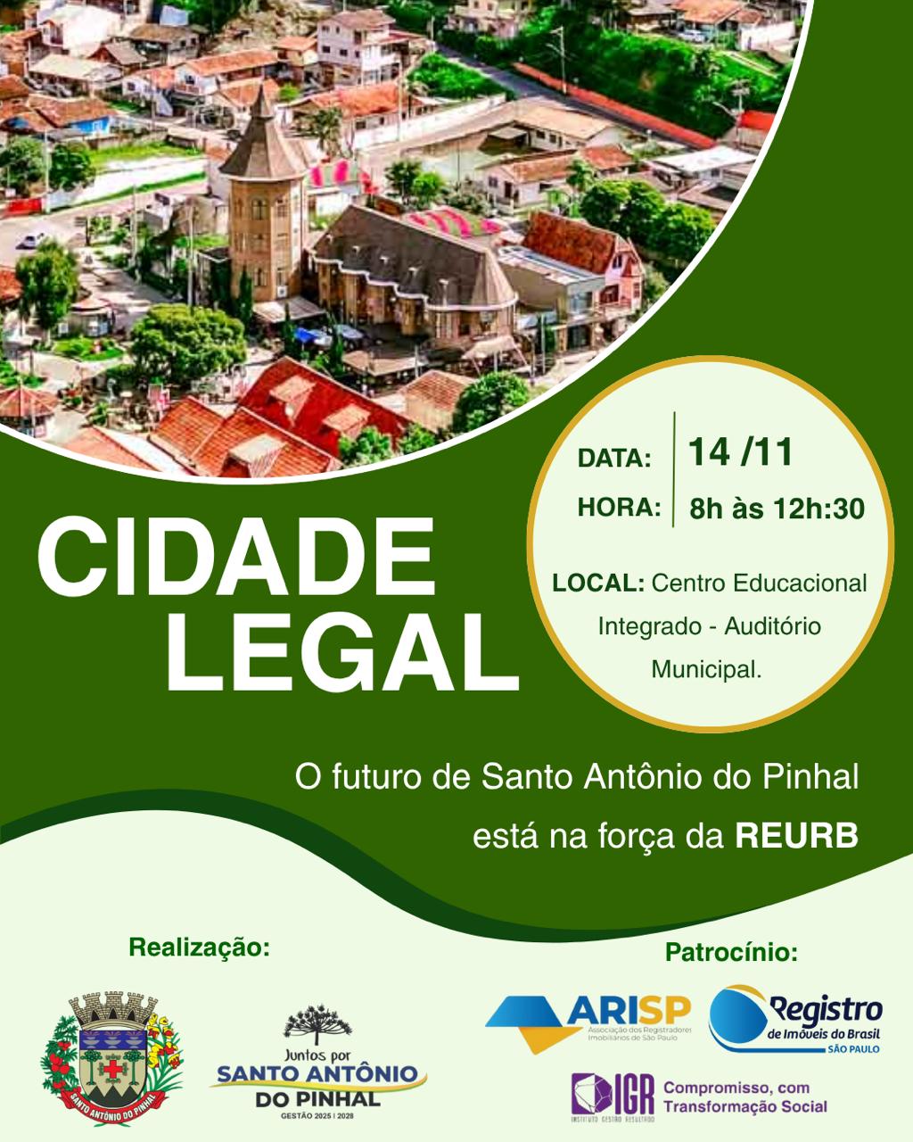 30 de outubro de 2025 Santo Antônio do Pinhal recebe o Seminário “Cidade Legal: O futuro de Santo Antônio do Pinhal está na força da REURB” LEIA MAIS Eventos